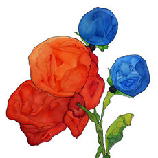 Acrylic on canvas original painting (2001) > made kaleidoscope like in photoshop > then placement printed on fabrics.